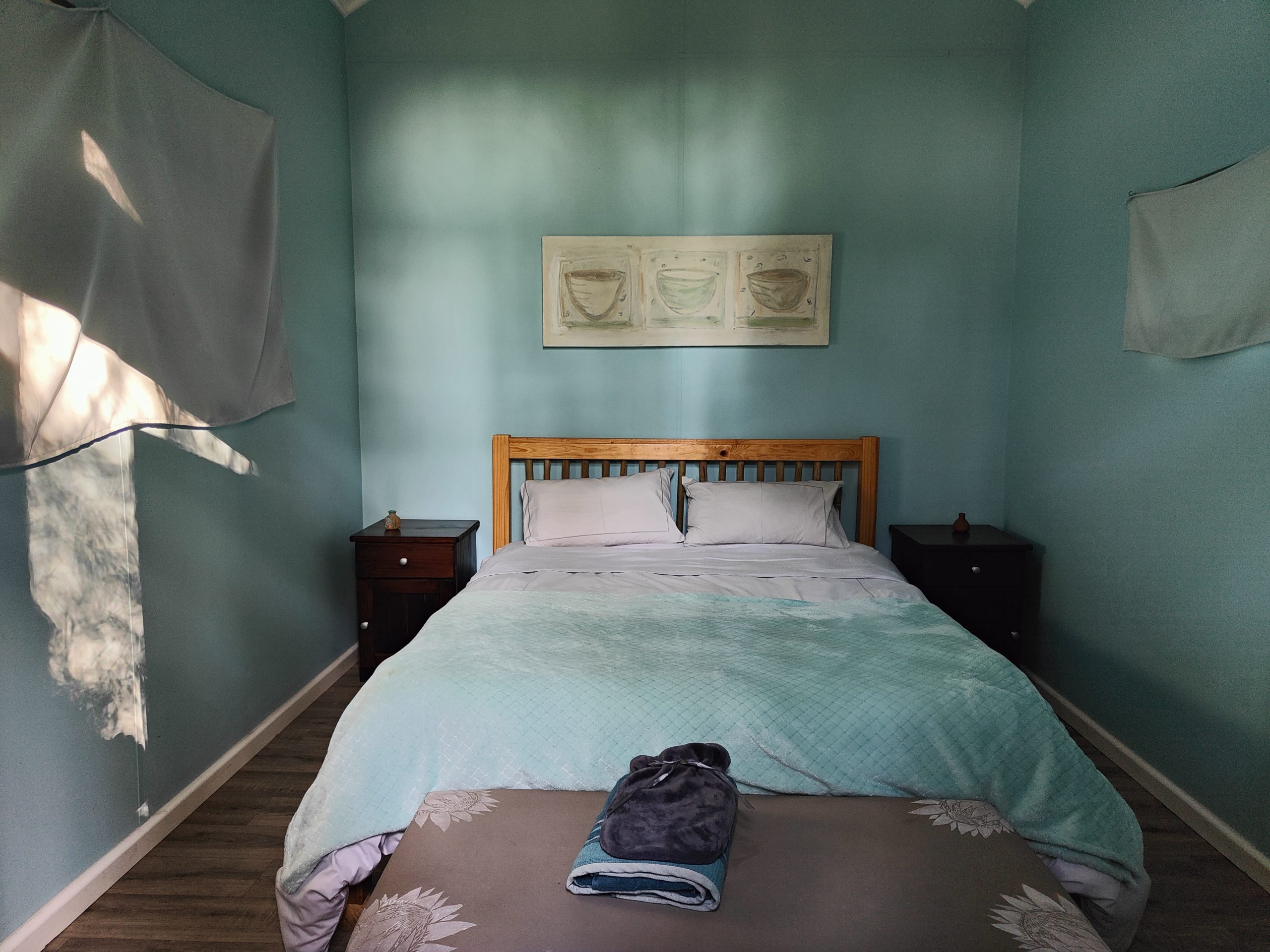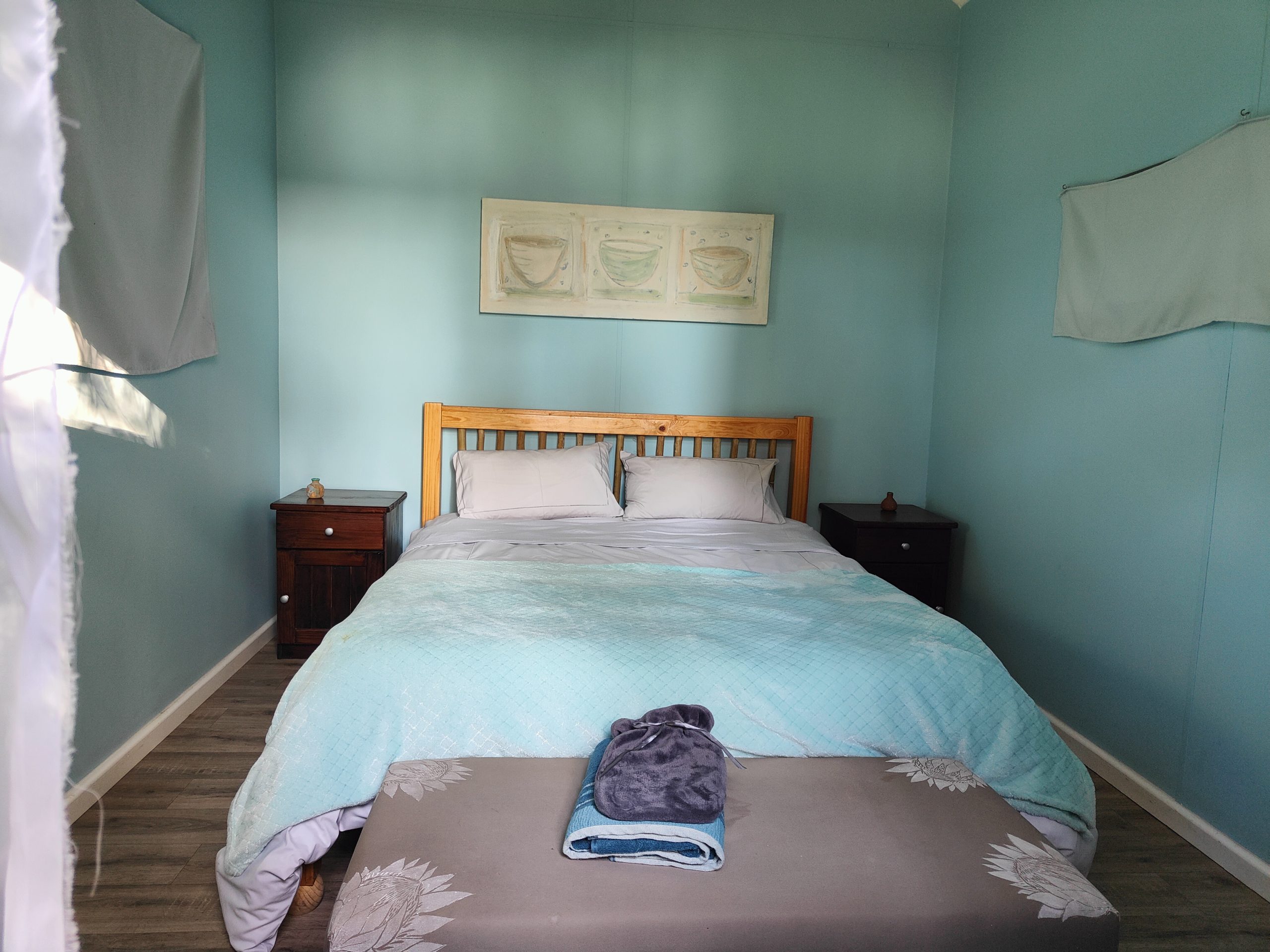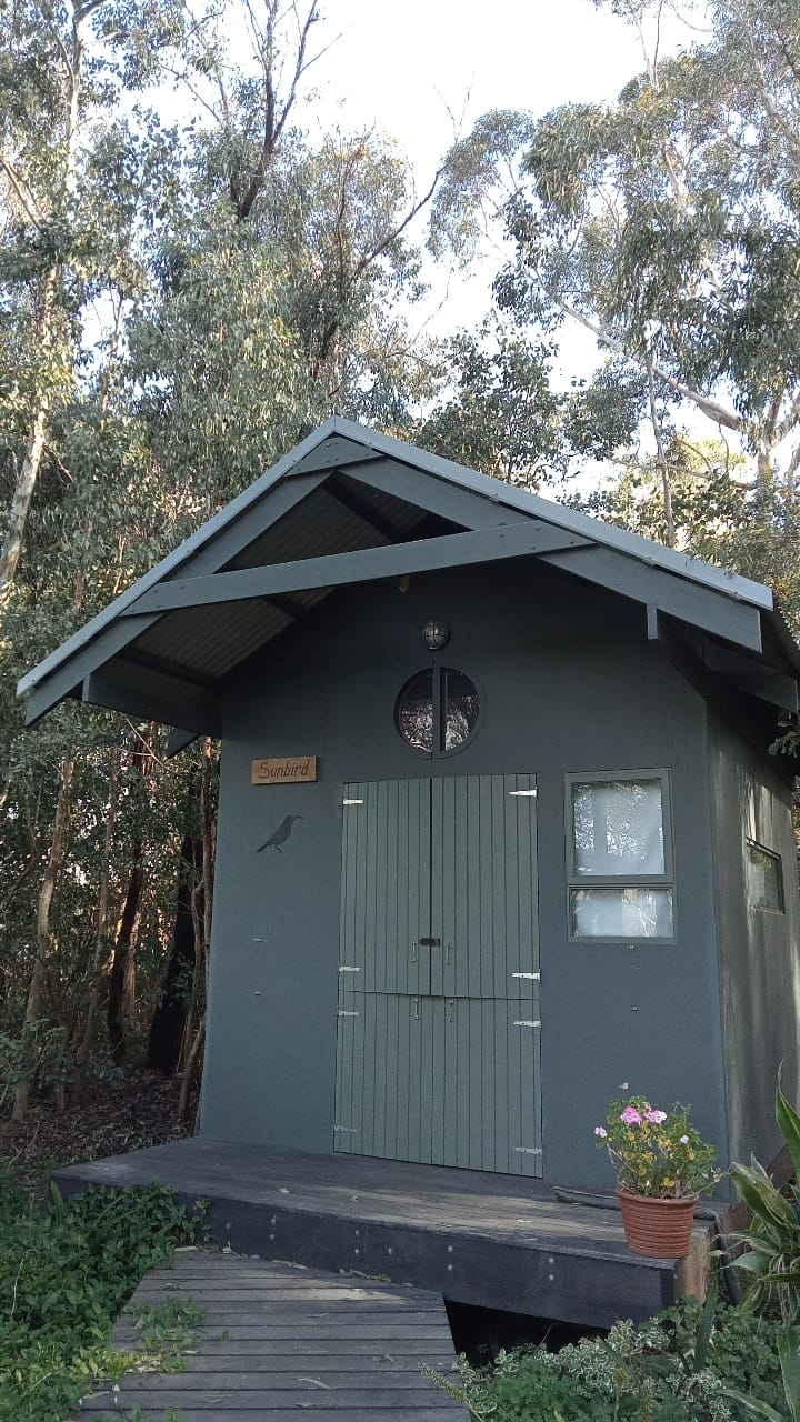 The Sunbird cabin sleeps two guests and is a cosy glamping option with linen and bedding provided.
